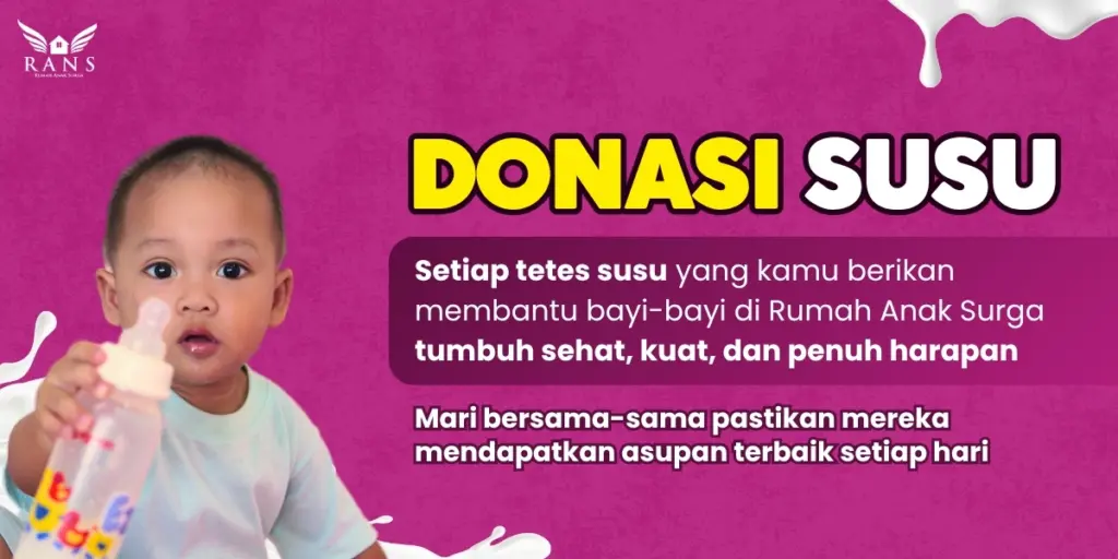 Program Donasi Susu adalah salah satu upaya utama untuk memenuhi kebutuhan gizi bayi-bayi di Rumah Anak Surga. Setiap harinya, mereka mengonsumsi susu 6 – 8 kali untuk tumbuh sehat dan kuat. Tanpa asupan yang cukup, mereka rentan sakit dan mengalami gangguan tumbuh kembang. Susu bukan hanya asupan tapi juga pengganti pelukan dan kasih sayang yang belum sempat mereka rasakan.